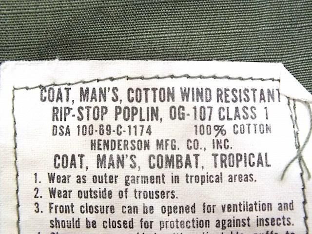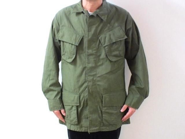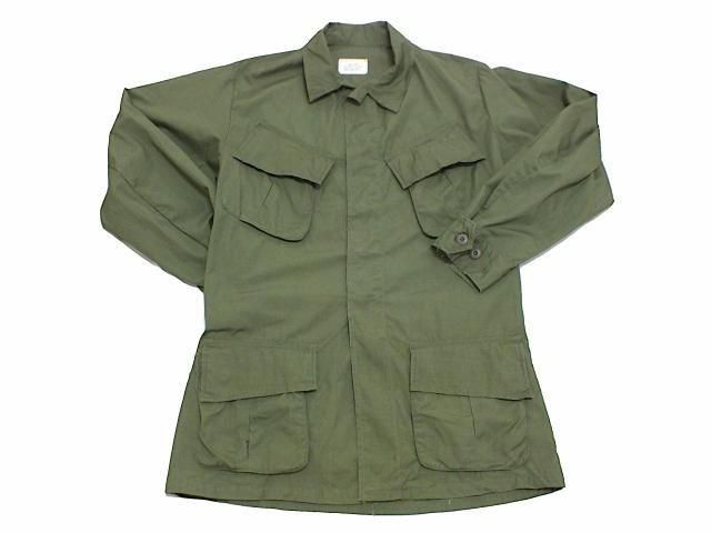 サイズ S-Regular (身幅55cm/ 袖丈61cm/ 着丈80.5cm/ 肩幅44cm) 60's 頃のジャングルファティーグ コートです。 所々に薄汚れがありますが 使用感が少なくデッドストックに近いミントコンディション。 DSA 100-69-C-1174 100% Cotton Rip-stop Poplin Color:OG
