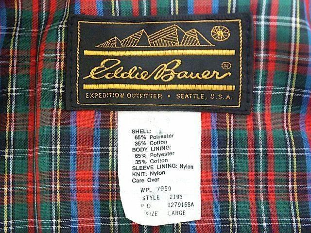 サイズ L (身幅61cm/ 袖丈51cm/ 着丈68cm) *袖丈は脇下から測定しています エディーバウアーのポリコットン ジップアップジャケットです。 小さなキズ、目立たない若干の色褪せがありますが 古着慣れしている方であれば問題無い程度です。 エディーバウアーのダービージャケット風ジャケット、 色々なシーンで活躍できると思います。 Shell&Lining:65% Polyester, 35% Cotton Color:Navy