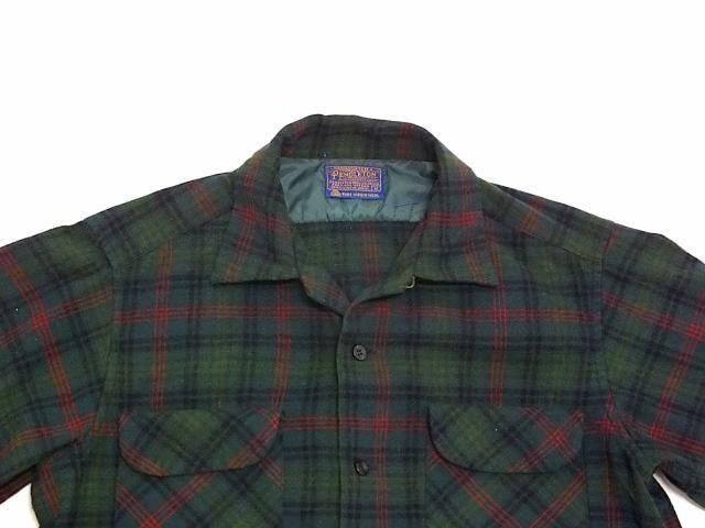 サイズ M (身幅58cm/ 袖丈60cm/ 着丈71.5cm/ 肩幅45cm) 60's 頃のペンドルトン ウール ループカラー シャツです。 使用感がありますが特に気になるダメージはありません。 古着慣れしている方であれば問題無い程度です。 色柄が良くお勧め。 100% Virgin Wool Color:Green×Red×Black×Yellow Green