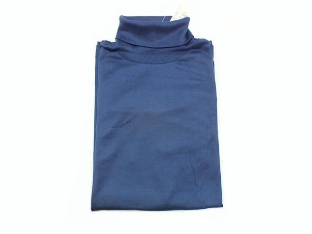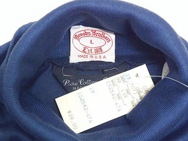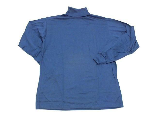 サイズ L (身幅56cm/ 袖丈62cm/ 着丈71cm/ 肩幅45cm) ブルックスブラザーズ デッドストック コットン タートルネックです。 特に気になるダメージはありません。 未洗濯の貴重なデッドストック。 長繊維で光沢感のあるライル糸のコットンです。 Made In U.S.A. 100% Cotton Color:Steel Blue