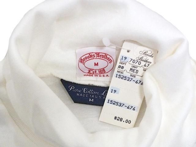 サイズ M (身幅53cm/ 袖丈62cm/ 着丈68cm/ 肩幅45cm) ブルックスブラザーズ デッドストック コットン タートルネックです。 裾辺りに薄汚れがありますが(画像参照) 洗濯などできれいになると思います。 未洗濯の貴重なデッドストック。 長繊維で光沢感のあるライル糸のコットンです。 Made In U.S.A. 100% Cotton Color:White