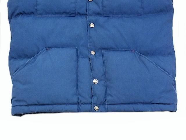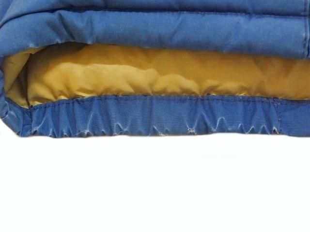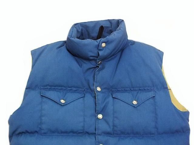 サイズ M (身幅57cm/ 着丈65cm/ 肩幅44cm) 茶タグノースフェイス 65/35 ダウンベストです。 裾内側に擦れ、キズがありますが 見えない箇所なのであまり気になりません。 古着慣れしている方であれば問題無い程度です。 Color:Navy 65% Polyester, 35% Cotton