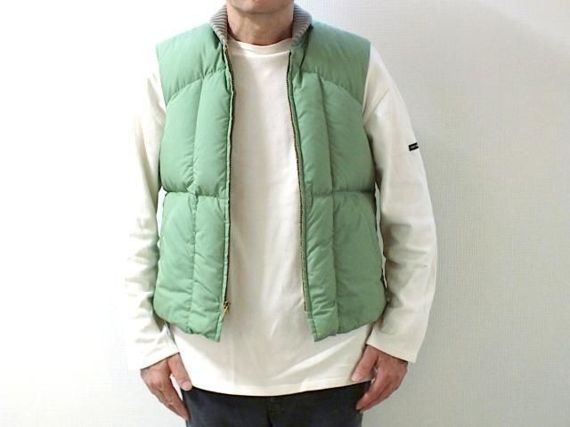 サイズ M (身幅51.5cm/ 着丈67cm/ 肩幅41cm) テンプコ ナイロンダウンベストです。 襟に色褪せがありますが ダウンの抜け、汚れなどはあまり気になりません。 古着慣れしている方であれば問題無い程度です。 Talonジッパーの動作は良好です。 質の高いダウンウェアなどを生産していたブランドで、 ラルフ・ローレンにも愛されたブランドとして知られています。 Color:Celadon Green