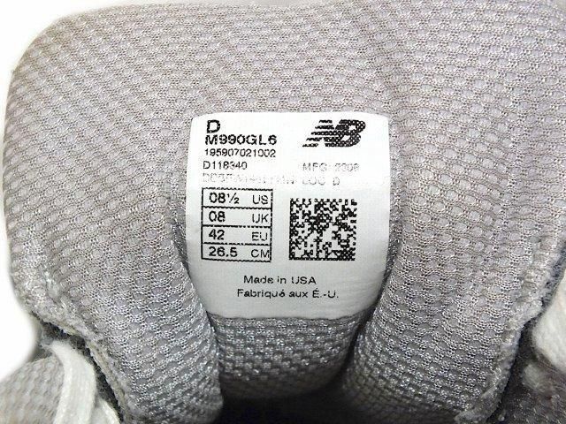 サイズ 8 1/2 D (アウトソール全長31cm/ 幅11.3cm) *26.5cm 程度のサイズです アメリカ製ニューバランス 990 v6です。 シューレースに薄汚れ、 穿き口に少し擦れ、 ソールに少し汚れがありますが まずまずの状態良です。 Made In U.S.A. Color:Gray