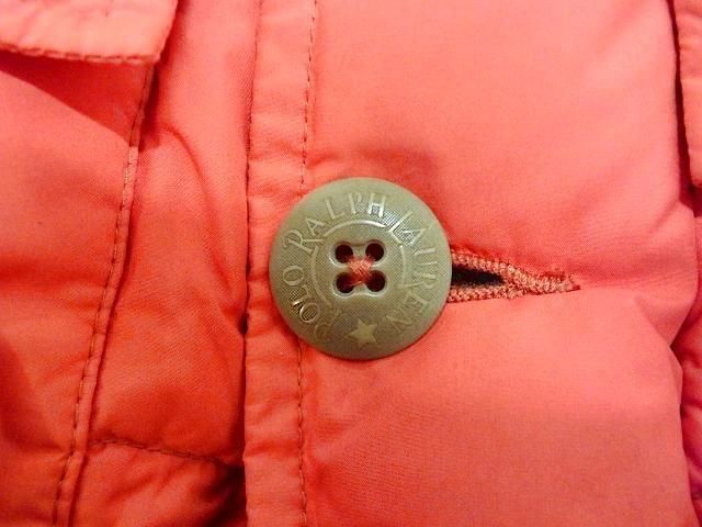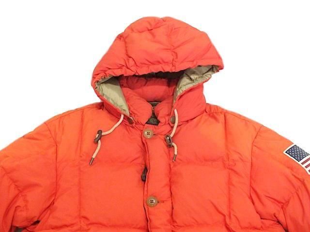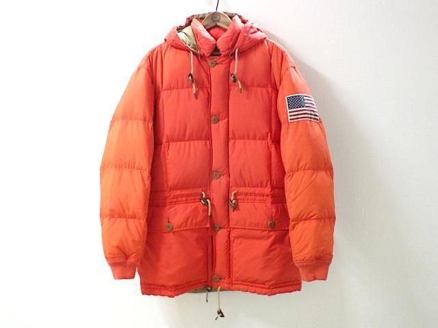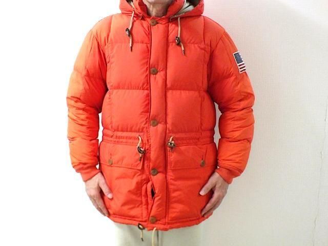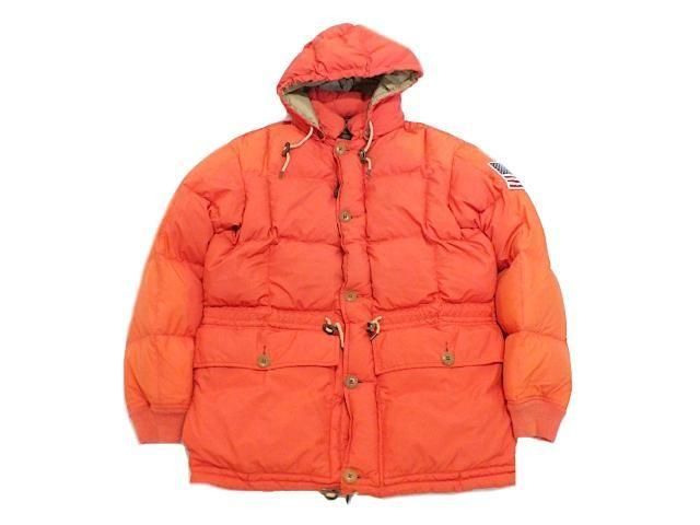 サイズ S (身幅57cm/ 袖丈61cm/ 着丈81cm/ 肩幅51cm) ラルフローレン ダウンジャケットです。 新品タグ付きですが、 肩、両袖、背中など焼け、色褪せのような変色箇所があります。 画像にてご確認ください。 ダウン抜けはありません。 フードは取り外し可能で ボディはボタンとジッパーの二重構造。 エディバウアーのカラコラムのようなデザインです。 Shell&Lining:100% Polyester Filling:80% Down, 20% Feather Made In China Color:Orange