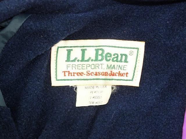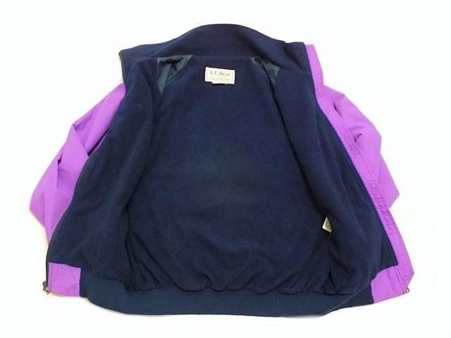 サイズ 不明 (身幅60cm/ 袖丈50cm/ 着丈62.5cm) *袖丈は脇下から測定しています 80's 後期頃のL.L.ビーン スリーシーズン ジャケットです。 リブ、内側フリースライニングなどに 少し毛玉ありますがあまり気になりません。 古着慣れしている方であれば問題無い程度です。 軽量な生地は防風&速乾性に優れ ふんわりテクスチャーのポリプロピレンライニングは 湿気を逃がしてくれます。 100% Supplexのナイロンシェルは コットンのような質感でありながら ナイロンの特性である、摩耗に強い生地です。 ゆったり目の作りで ショルダーシームはダブルステッチ。 襟を開いて着ても、 ジッパーを上まで引き上げて着ても良し。 Made In U.S.A. Shell&Sleeve Lining:100% Nylon Body Lining:100% Polyester Color:Purple