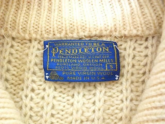 サイズ S (身幅52cm/ 袖丈68cm/ 着丈67cm/ 肩幅48cm) アメリカ製ペンドルトン ウールニット ジップアップセーターです。 特に気になるダメージはありません。 YKKジッパーの動作は問題ありません。 性別問わずお勧め。 100% Virgin Wool Color:Ivory Made In U.S.A.