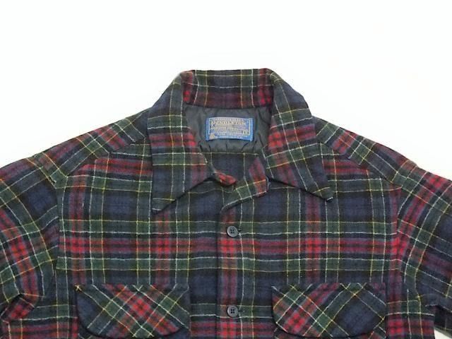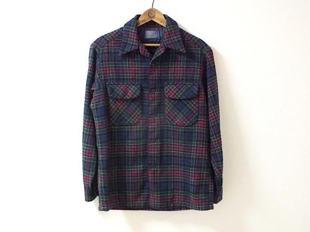 サイズ S (身幅50cm/ 袖丈56cm/ 着丈69cm/ 肩幅43cm) 70's 頃のペンドルトン ウール ループカラー シャツです。 使用感がありますが特に気になるダメージはありません。 古着慣れしている方であれば問題無い程度です。 色柄が良く、小さめサイズをお探しの方にお勧め。 100% Virgin Wool Color:Black×Green×Red×Navy×Yellow×White Made In U.S.A.