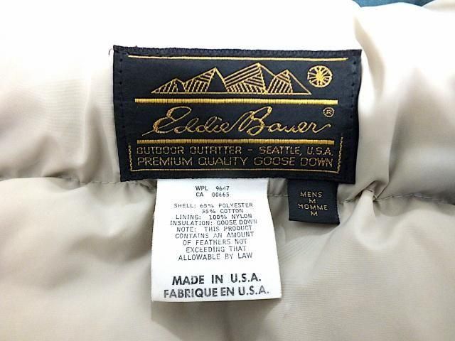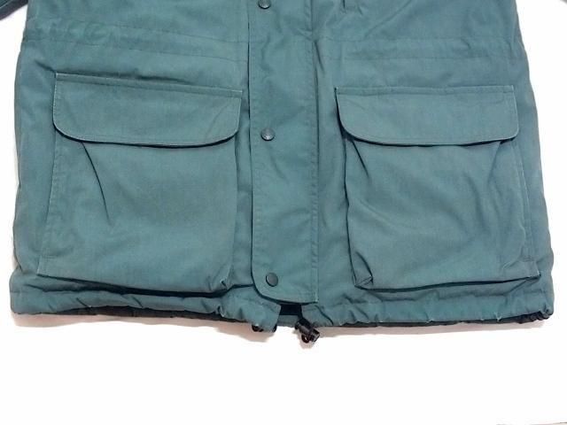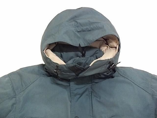 サイズ M (身幅63cm/ 袖丈63cm/ 着丈84cm/ 肩幅54cm) アメリカ製エディーバウアー リッジラインパーカです。 内側に付くジッパーヘッドが欠損していますが 見えない箇所なのであまり気になりません。 袖、袖口などに擦れ、キズがありますが ダウンの抜けは少なくまずまずの状態です。 タフでしっかり防寒してくれるパーカ。 極寒にも耐えられる作りでありながら もう少しマイルドな気候の時に着ても快適です。 アウターシェルのベイヘッドポプリンは 風や悪天候から守ってくれます。 キルトライニングのナイロンタフタの中には グースダウン。 袖には隠れ袖口リブが付いていて寒気を防ぎ熱を逃がしません。 リッジラインパーカの防寒性を大幅アップしてくれる、 当時別売りだったフードも付属します。 シェルベイヘッドポプリン、グースダウン入り。 ジッパーで着脱できます。 Color:Forest Green Made In U.S.A. Shell:65% Polyester, 35% Cotton Lining:100% Nylon Insulation:Goose Down