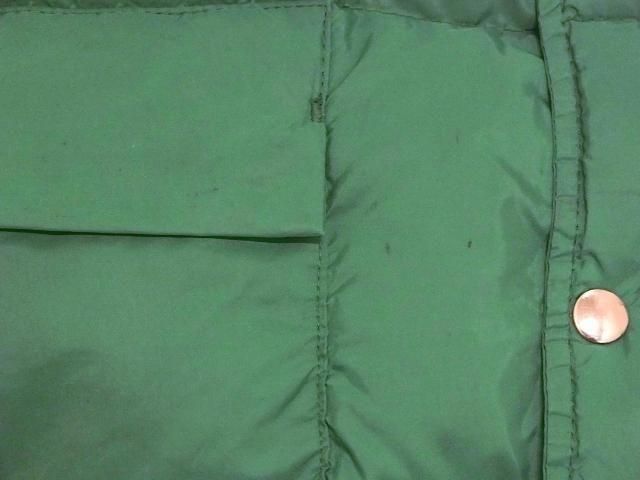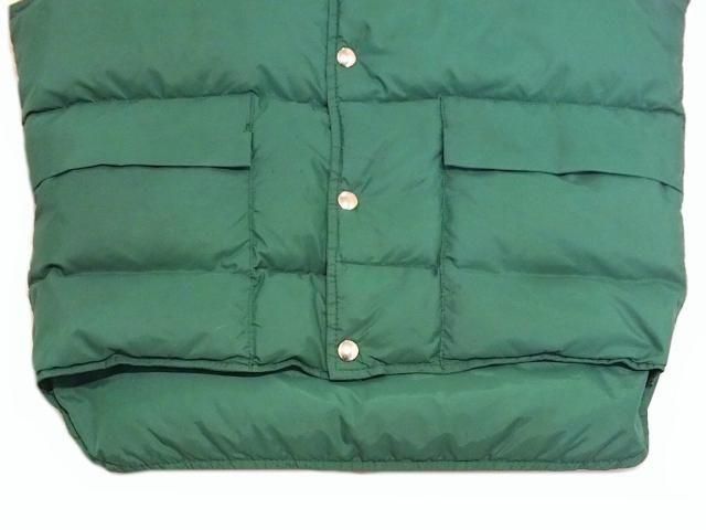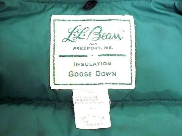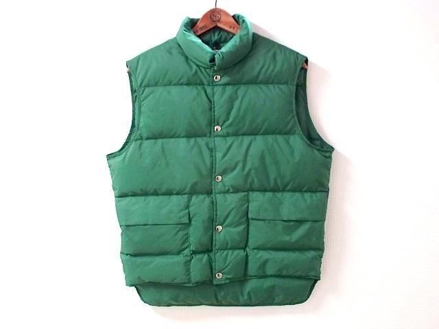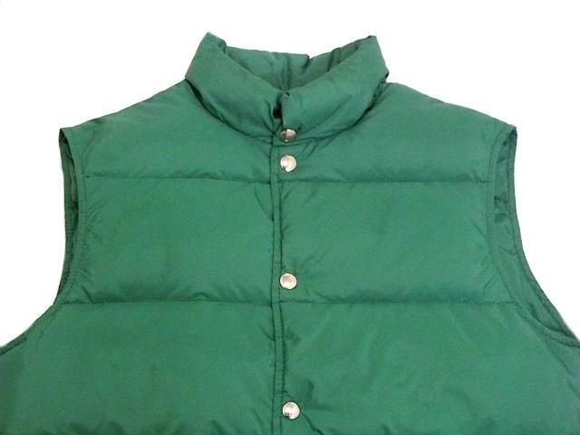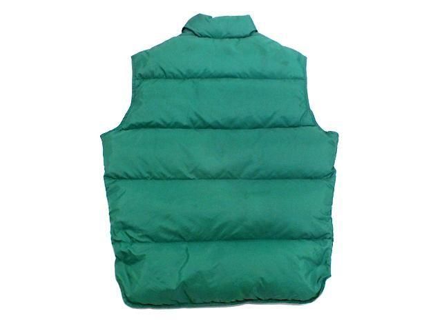 サイズ M (身幅55cm/ 着丈66.5cm/ 肩幅44cm) 70's 頃の筆記タグL.L.ビーン トレイルモデル ベストです。 お腹辺りに小さな汚れ、 後面の裾辺りに汚れがあります。 当店で洗濯してみましたが、落ちませんでした。 クリーニング出して頂ければもう少し綺麗になると思います。 ダウンの抜けは気になりません。 全体的にはまずまずの状態です。 軽く、コンパクトに荷造り出来て キャンプや釣り、寒い日全般に ベスト単体で着ても シェル系のアウターの下に合わせても便利なベスト。 5オンスの高品質のグースダウンが入っていて シェルは目の詰まったナイロンタフタで 防風&撥水です。 Color:Green Shell&Liner:100% Nylon Filling:Goose Down