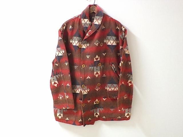 サイズ 不明 (身幅63cm/ 袖丈59cm/ 着丈76.5cm/ 肩幅53cm) 90's 頃のアメリカ製 ダブルアールエル コットンブランケット ジャケットです。 ボタンホールに解れ、 所々に擦れ、キズなどありますが 古着慣れしている方であれば問題ない程度。 元々ベルトループ付きだと思われますが ベルトループは無く、着用時も気にならないと思います。 ショールカラーで木製ボタン。 ライニング無しの一枚仕立てです。 Shell:100% Cotton Made In U.S.A.