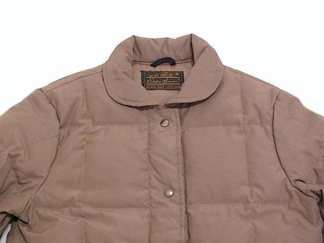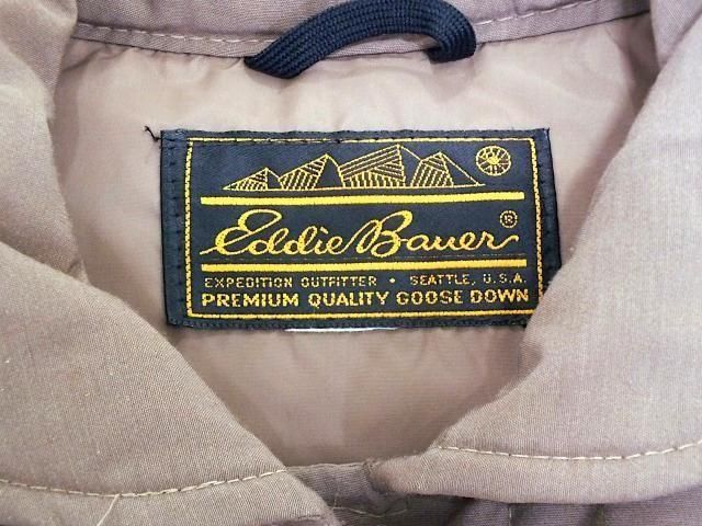 サイズ 不明 (身幅52cm/ 袖丈63cm/ 着丈72cm/ 肩幅44cm) 80's 頃のエディーバウアー キャンプジャケットです。 左ポケットに小さなキズ、 所々に目立たない汚れがありますが 古着慣れしている方であれば問題無い程度。 ダウンの抜けは少なく状態良いです。 素材タグが無いため詳細不明ですが、 ライニングは100% Nylon、 シェルは 65% Polyester, 35% Cottonで アメリカ製だと思います。 Color:Light Cocoa Brown