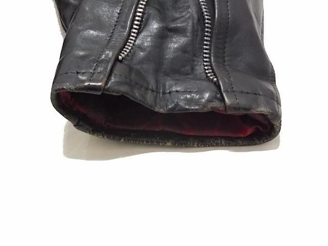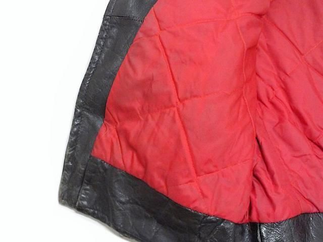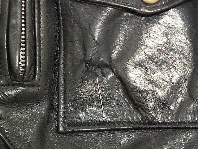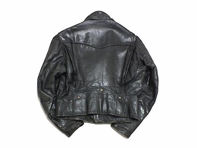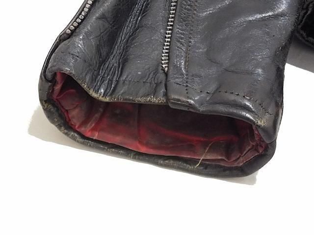 サイズ 不明 (身幅54cm/ 袖丈62cm/ 着丈55cm/ 肩幅49cm) 50's 頃のシアーズ ライダースジャケットです。 Dポケット辺りに小さな破れ、キズがあります。 内側タグに解れ、赤のキルトライニングに ステッチの飛び、汚れがあります。 ダメージ箇所は画像にてご確認下さい。 タロンジッパーの動作は良好。 その他擦れ、キズがありますが レザーの状態はまずまずで雰囲気あります。 Color:Black
