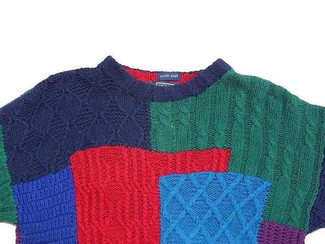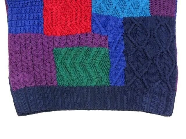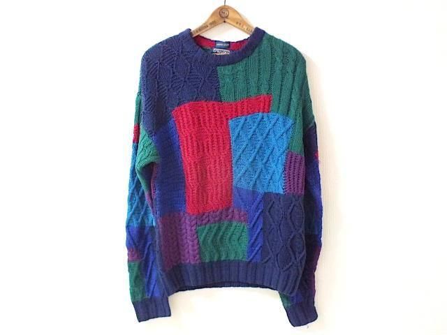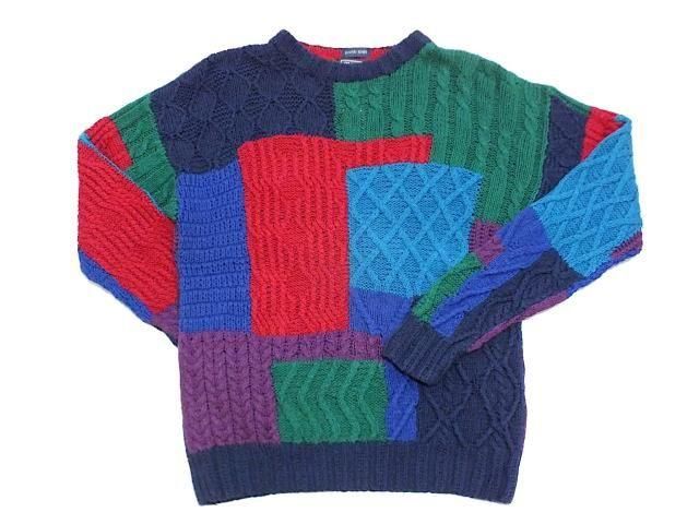 サイズ 不明 (身幅56cm/ 袖丈60cm/ 着丈65cm/ 肩幅59cm) ラルフローレン チャップス リネンコットン パッチワークハンドニットセーターです。 所々キズ、小さな解れがありますが 良く見ないと分からない程度。 古着慣れしている方であれば問題無いと思います。 デザイン、色柄が良くお勧めです。 55% Linen, 45% Cotton Color:Multi Color Made In China