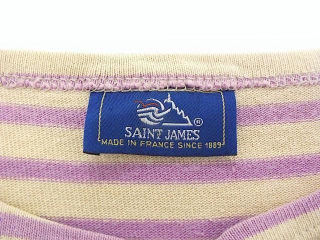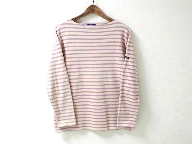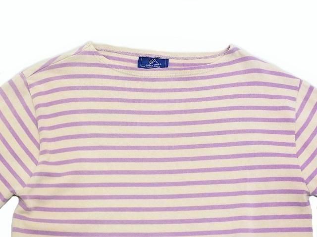 サイズ 5 (身幅51cm/ 袖丈56cm/ 着丈67cm/ 肩幅48cm) *USサイズは40です セントジェームス ボーダーウェッソンです。 少し使用感ありますが 古着慣れしている方であれば問題無い程度です。 Made In France 100% Cotton Color:Purple, Tan