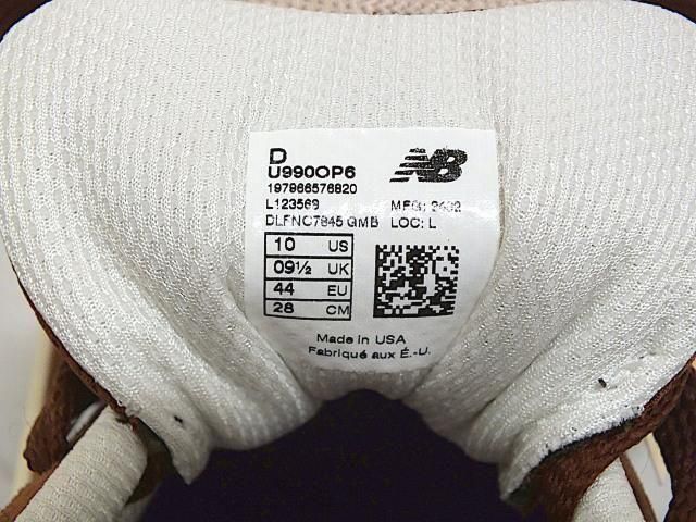 サイズ 10 D (アウトソール全長32cm/ 幅11.5cm) *28cm 程度のサイズです アメリカ製ニューバランス 990 v6です。 特に気になるダメージはありません。 箱はありませんが新品です。 少しお安くなっているので お好きな方は是非いかがでしょうか。 Made In U.S.A. Color:Brown